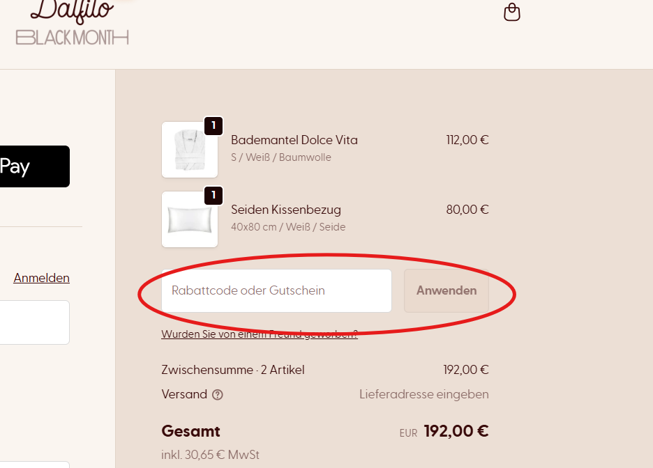 Wenn du dich über diesen Link registrierst, kannst du all deinen Freunden einen 15%-Rabatt auf alle Dalfilo-Produkte (außer dem Outlet-Bereich) senden. Sie müssen lediglich deine E-Mail-Adresse oder deinen Namen eingeben – und schon ist alles erledigt!